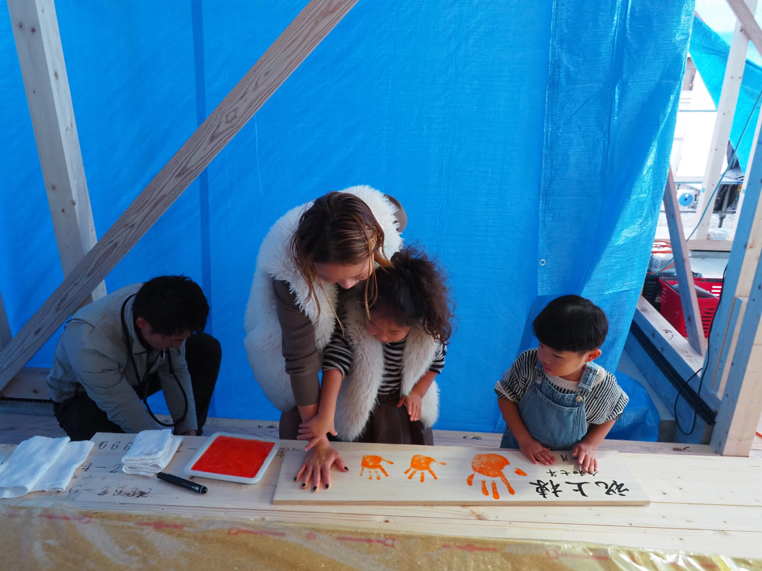 お父さんお母さんの手形を手伝っているお子さまがとってもかわいく
