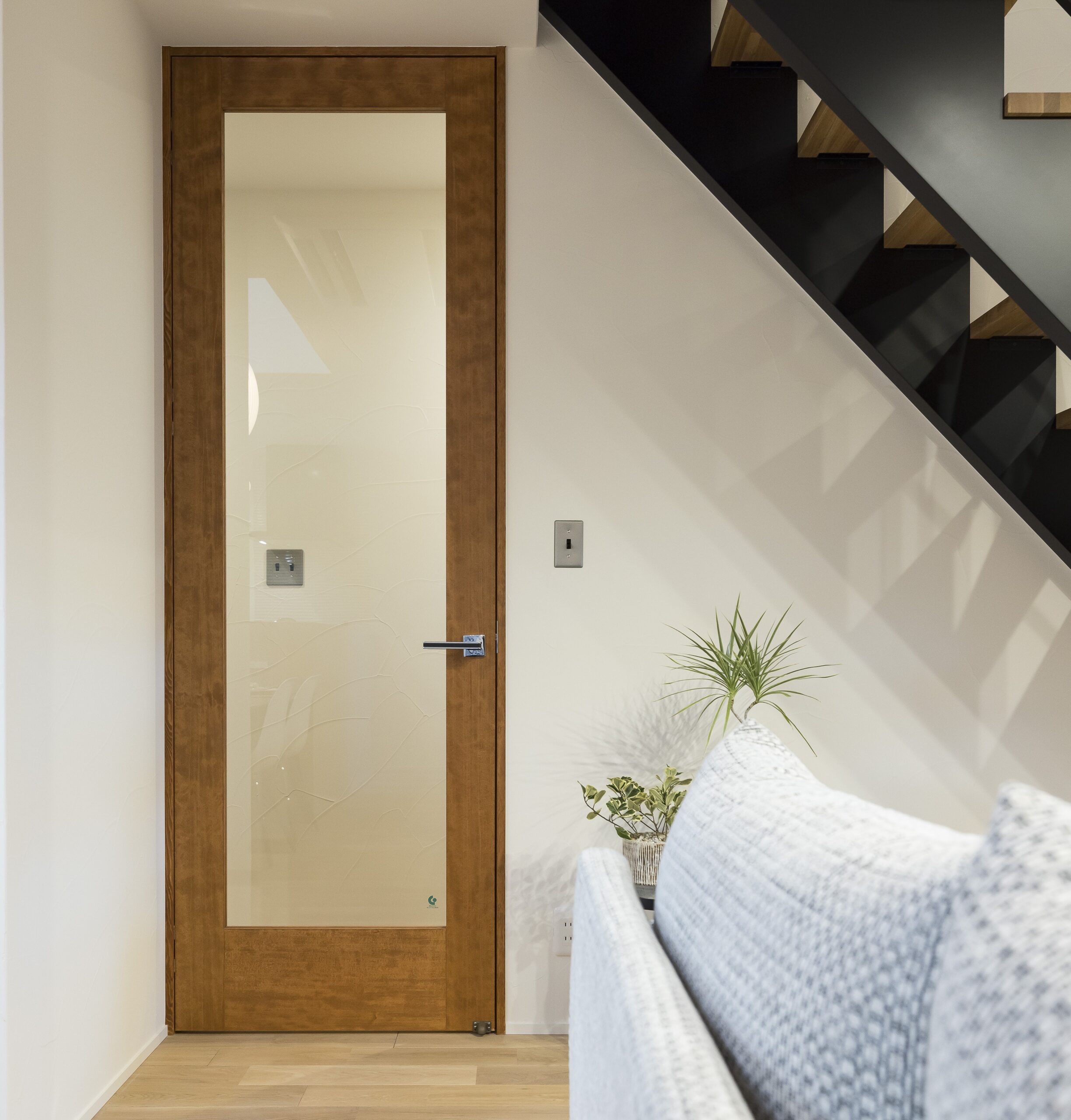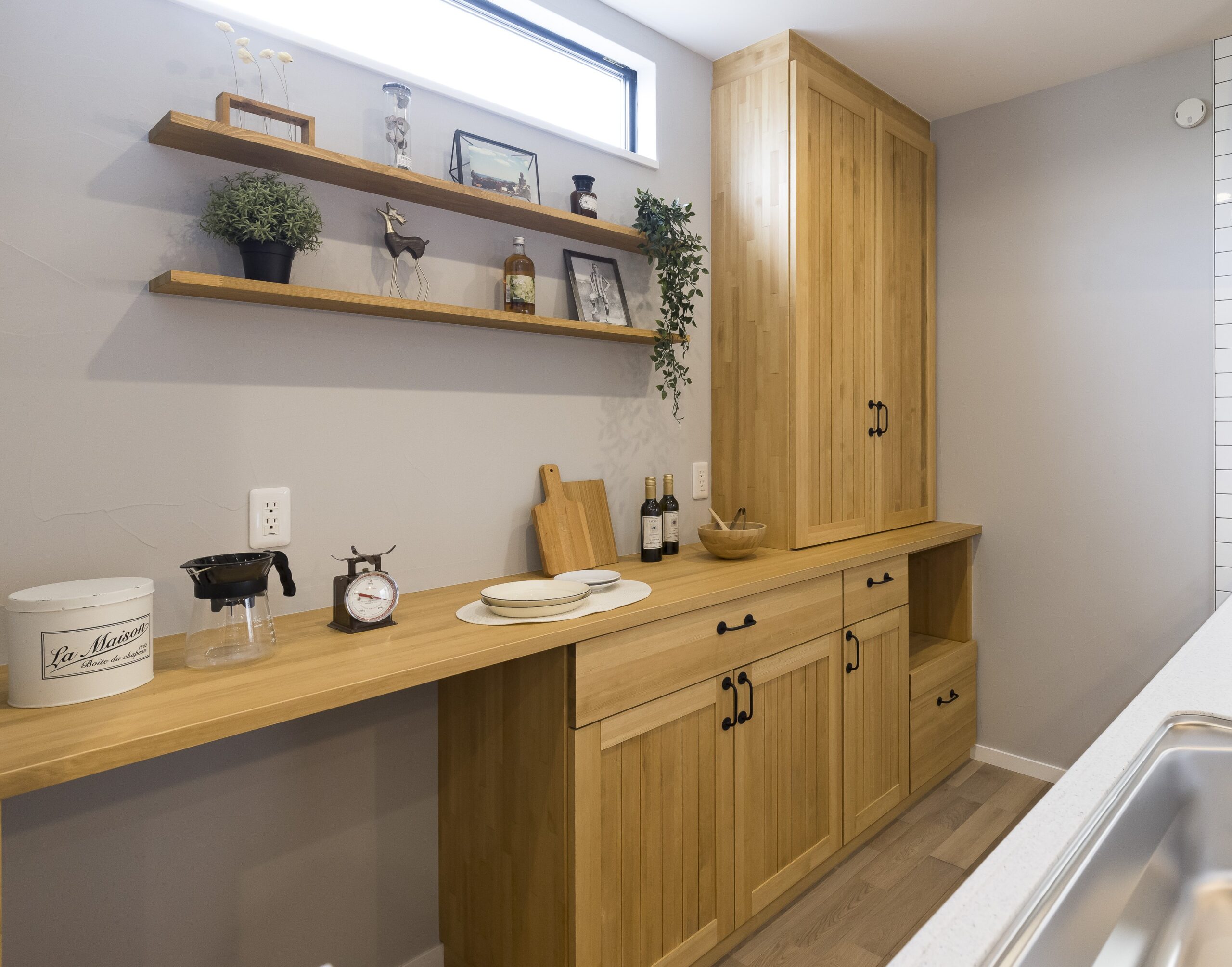 当初は「1F扉全部、ハイドアで食器棚はシンプルな収納がいい」と