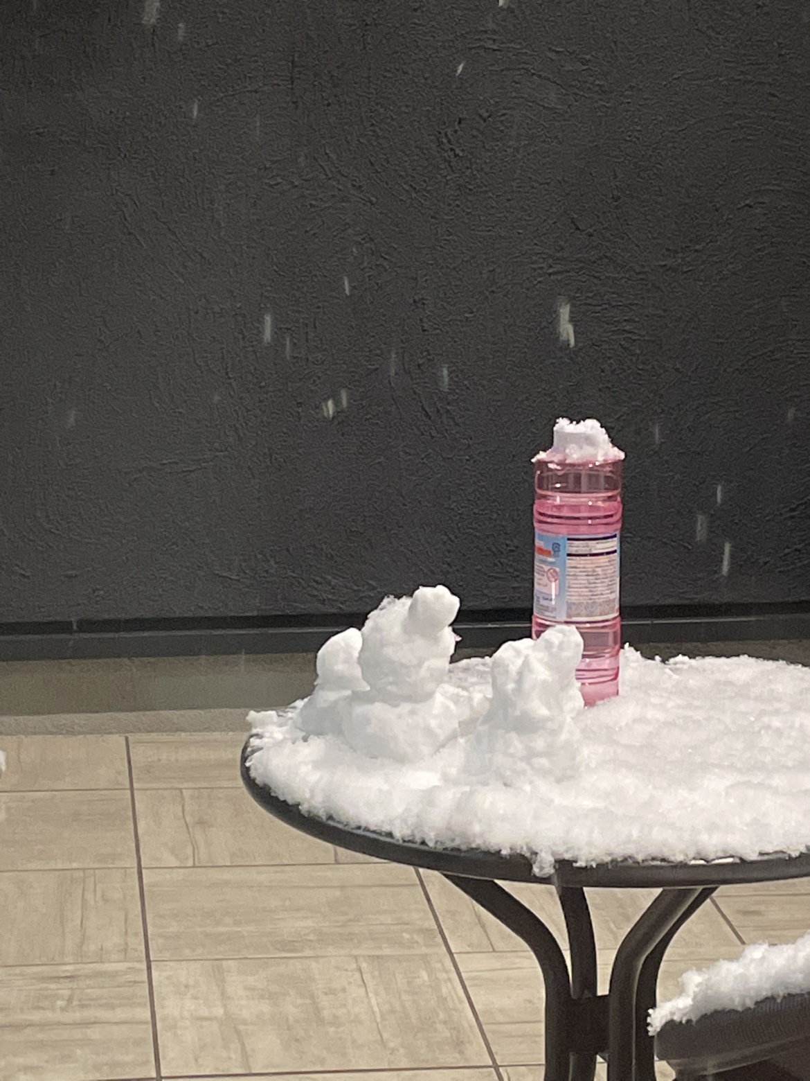 雪の日の夜もテラスにでて