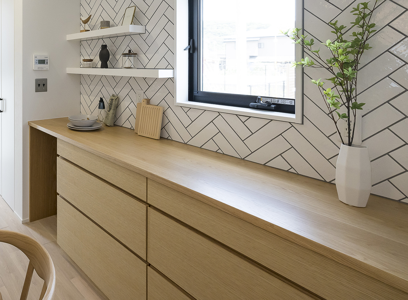お打ち合わせ当初は、ハイドアの食器棚などシンプルな内装をご希望されていましたが