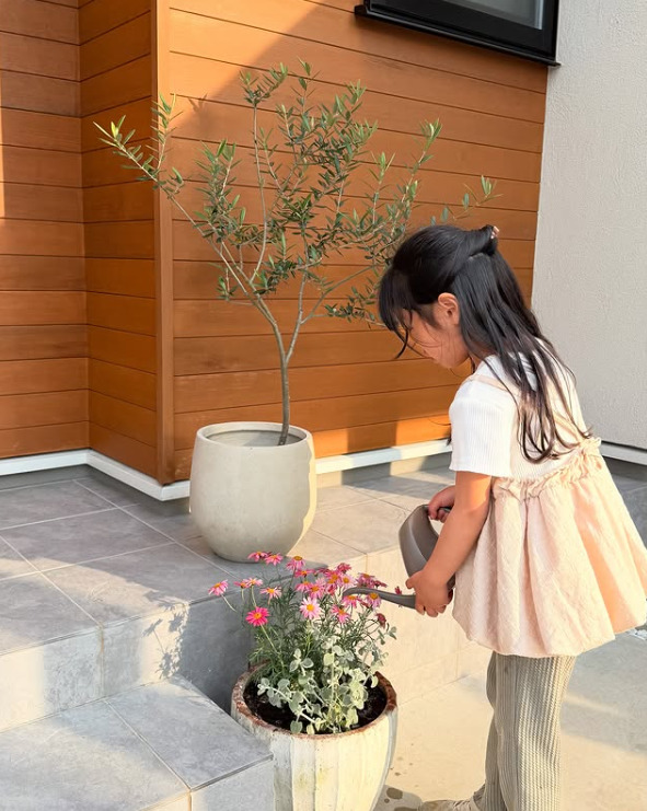 夕方の水やりは👧🏻がしてくれてる☺️ 念願の緑のある生活ができて幸せ〜🪴