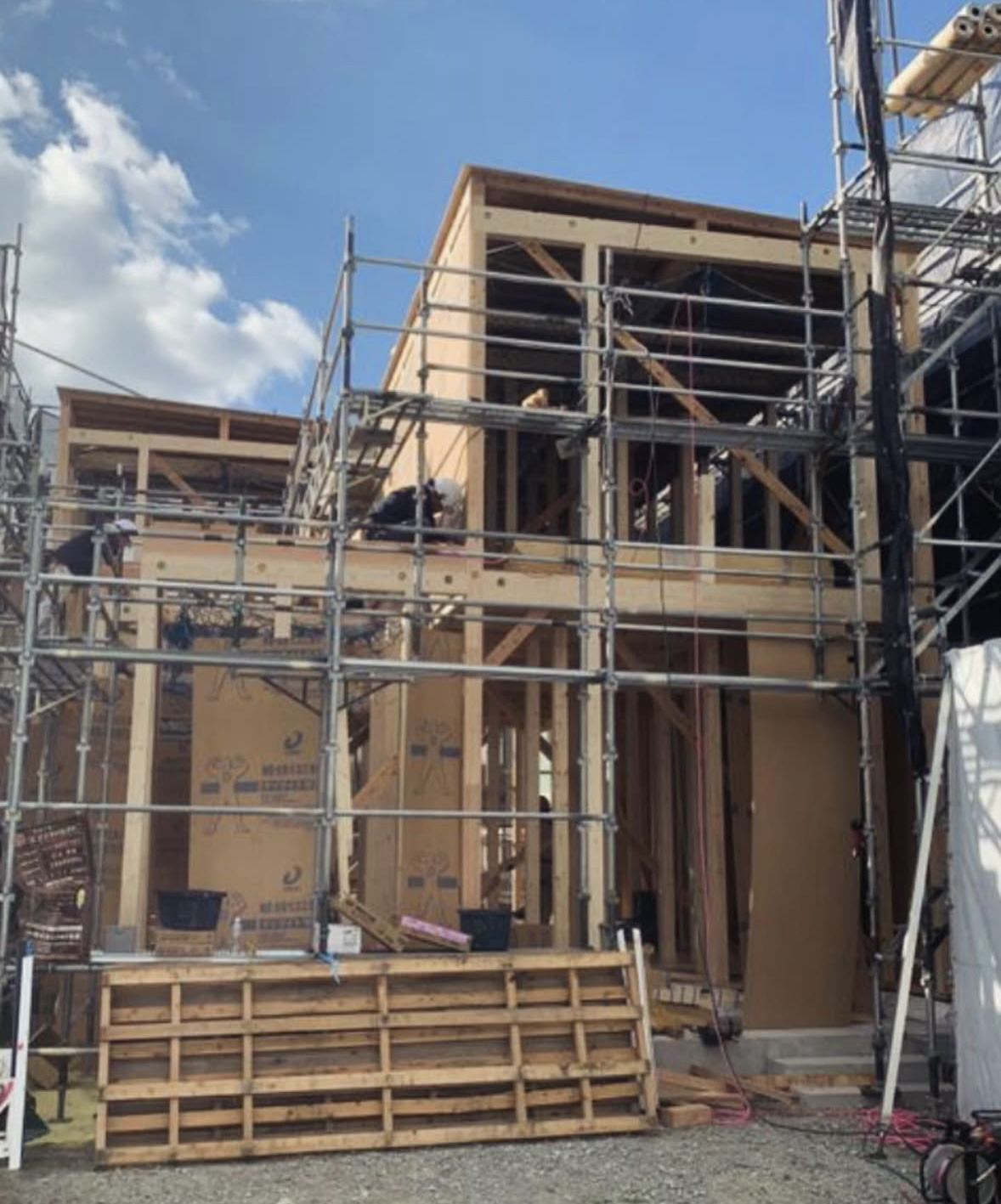 基礎を見た時もう少し大きくすればよかったかとやや不安になっていましたが上棟すると思っていたより大きかった😊 そして半日でここまでできるのかとびっくり‼️ これからが楽しみです。