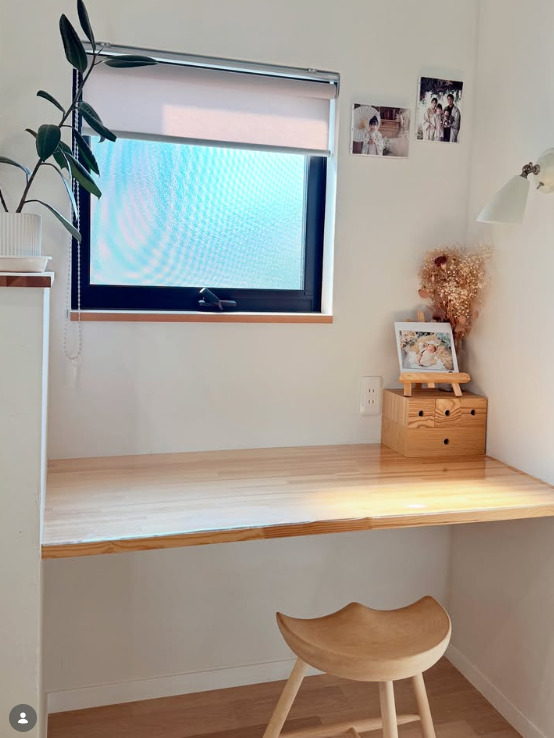 カップボード横にあるスタディスペース🪑 窓が近いから明るいし キッチンの近くにあるから 子どもがお絵描きや工作をしてても近くて安心🌟