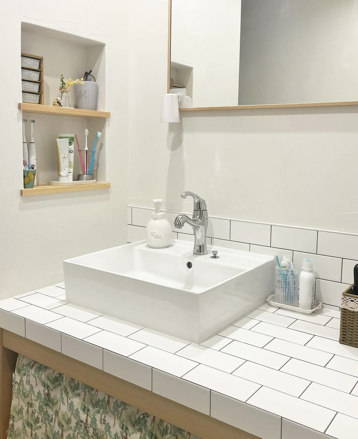 ニッチェも使いやすさを求めるとどうしても生活感がでてしまいますが・・・ お気に入りの雑貨を並べ、なるべくスッキリなるように心がけています🪥