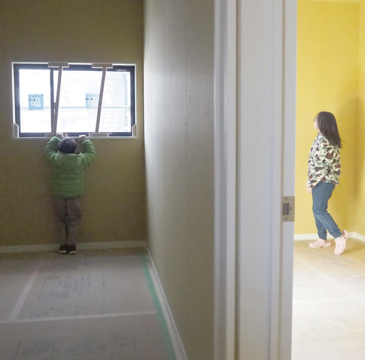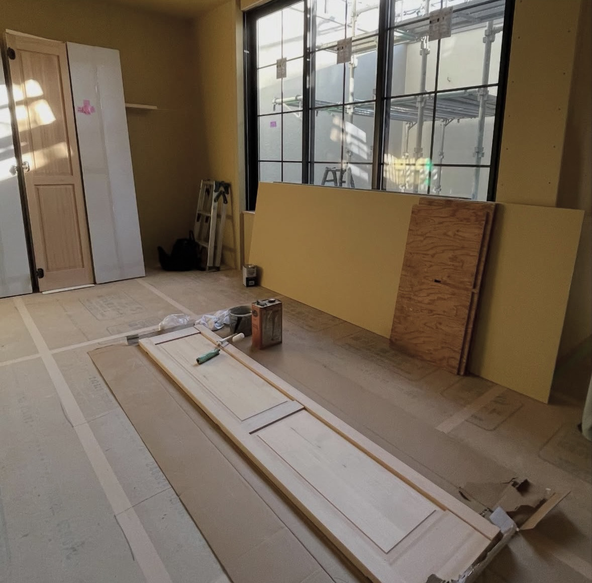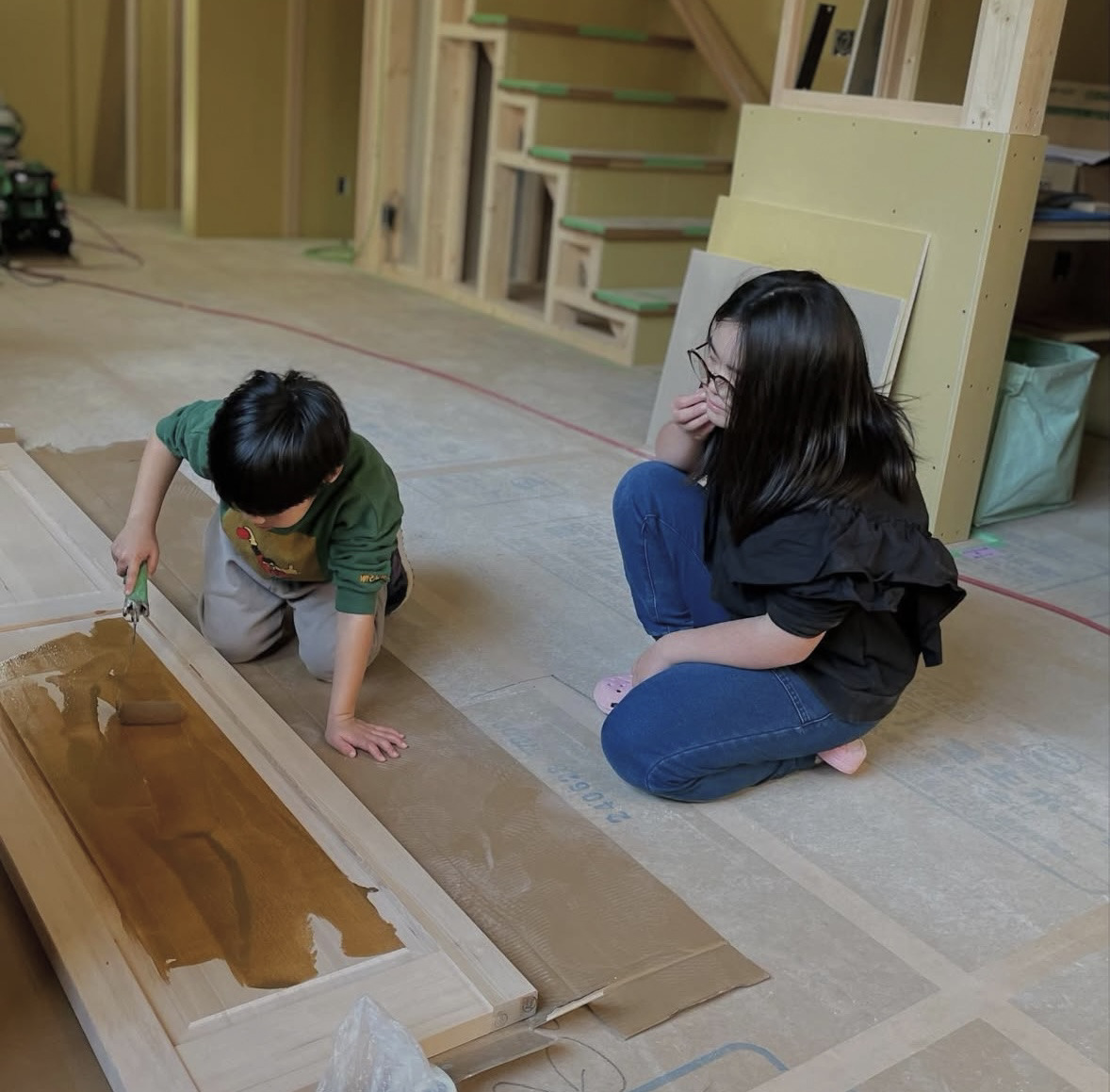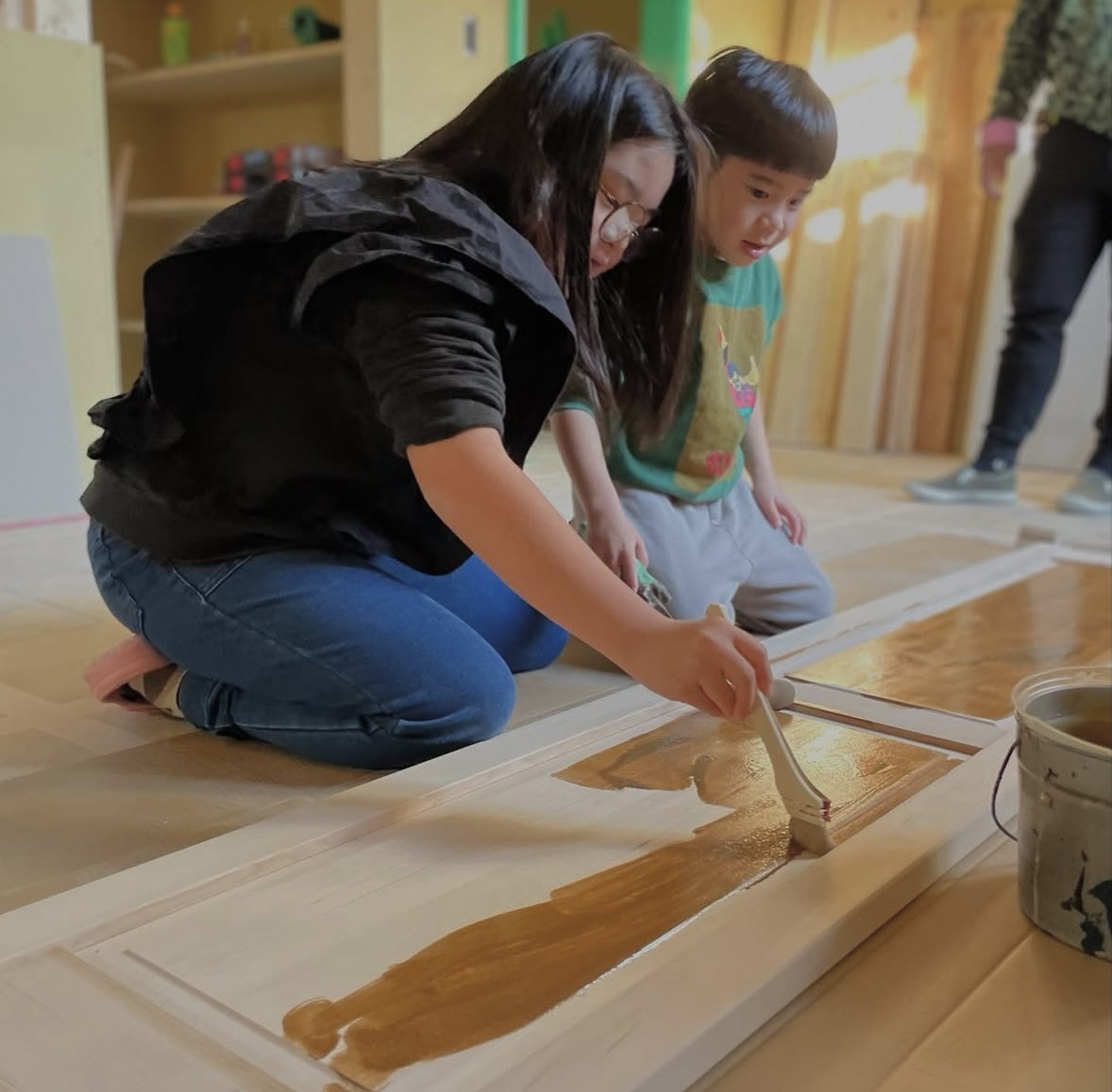 子ども達にはドアの色塗り体験も