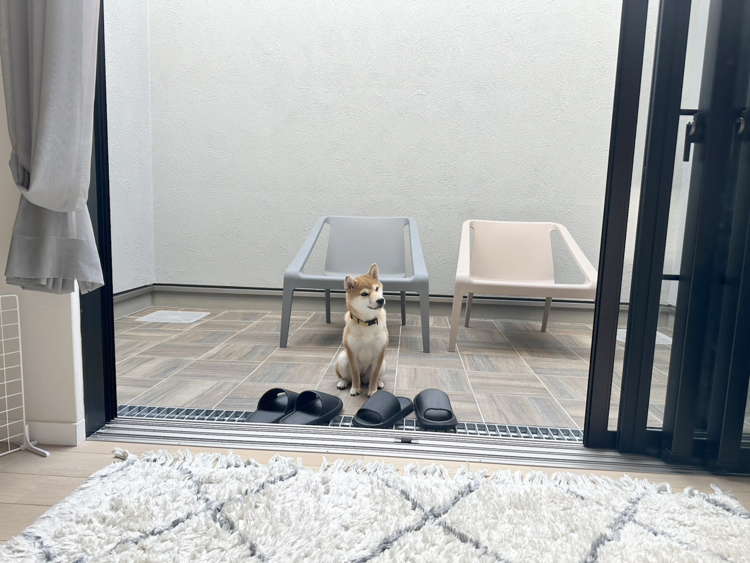 テラス越しに“中から眺める”時間を楽しまれたようです。